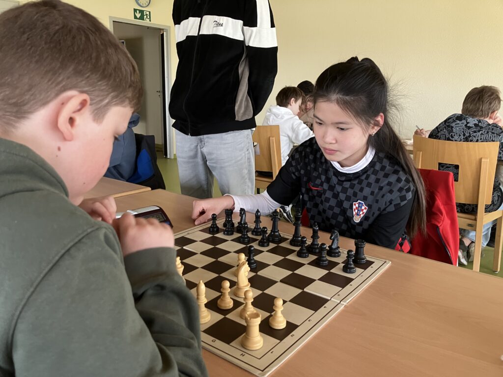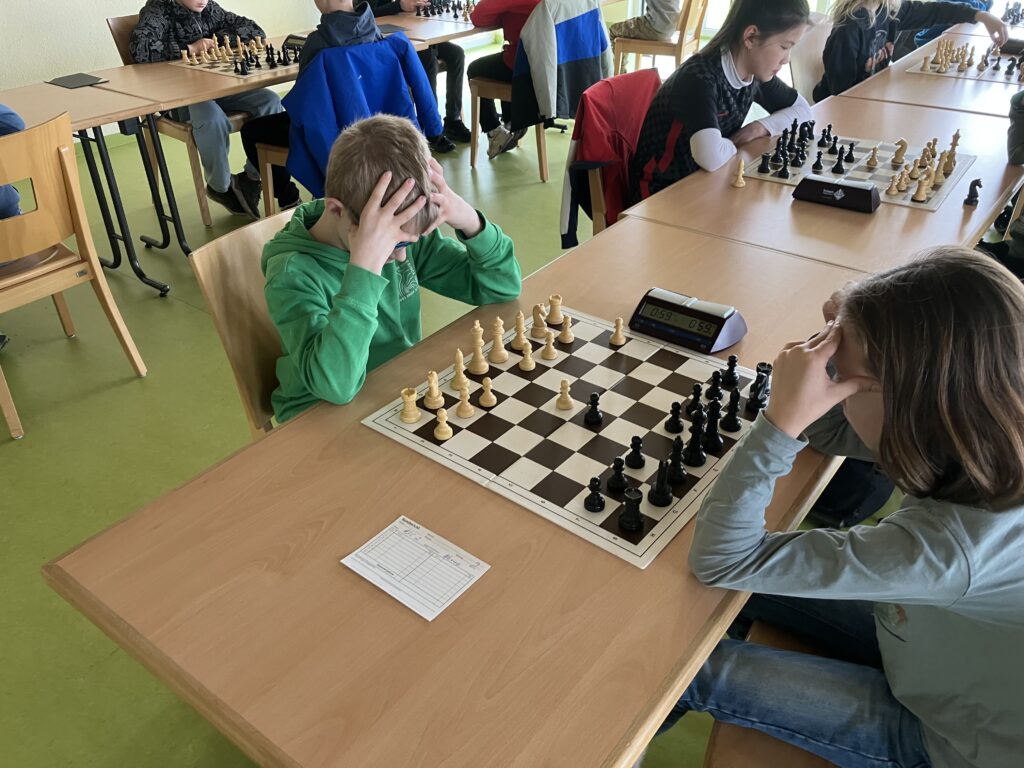 In der dritten Partie gegen Caissa Hamm wurde ein 2:2 Unentschieden erzielt, wobei Theo und Yanis toll spielten und gewinnen konnten.